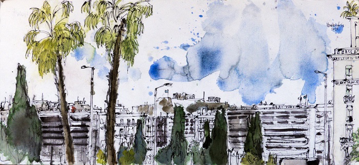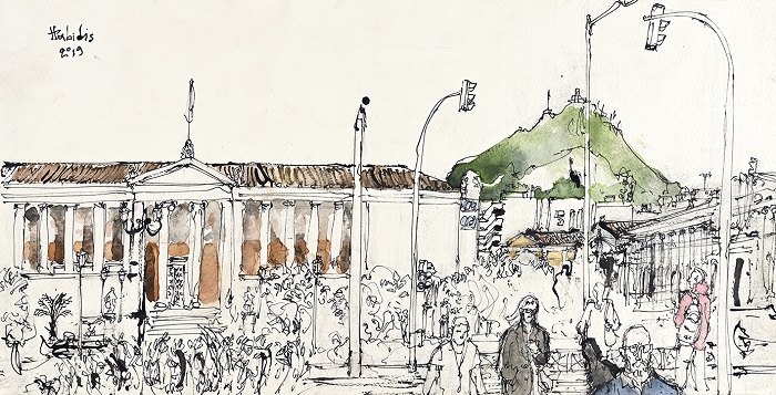 Pavlos Habidis, à travers une série de dessins à l’encre et à l’aquarelle présentés à l’Electra Art Space de la galerie Skoufa, dans le quartier de Syntagma, éveille notre regard. Il nous fait redécouvrir la ville avec un regard d’artiste expérimenté. Il nous révèle l’âme d’Athènes, dévoile ses couleurs et capture les paysages de la ville avec une aisance rassurante.
